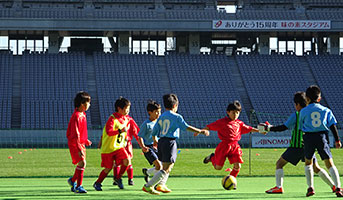 人工芝部分に、38m×38mのコートを8面作ることができます。ボールが天然芝部分に転がらないようにネットも完備しております。スタンドを併用することで、多くのチームが集まる大会を実施することができます。